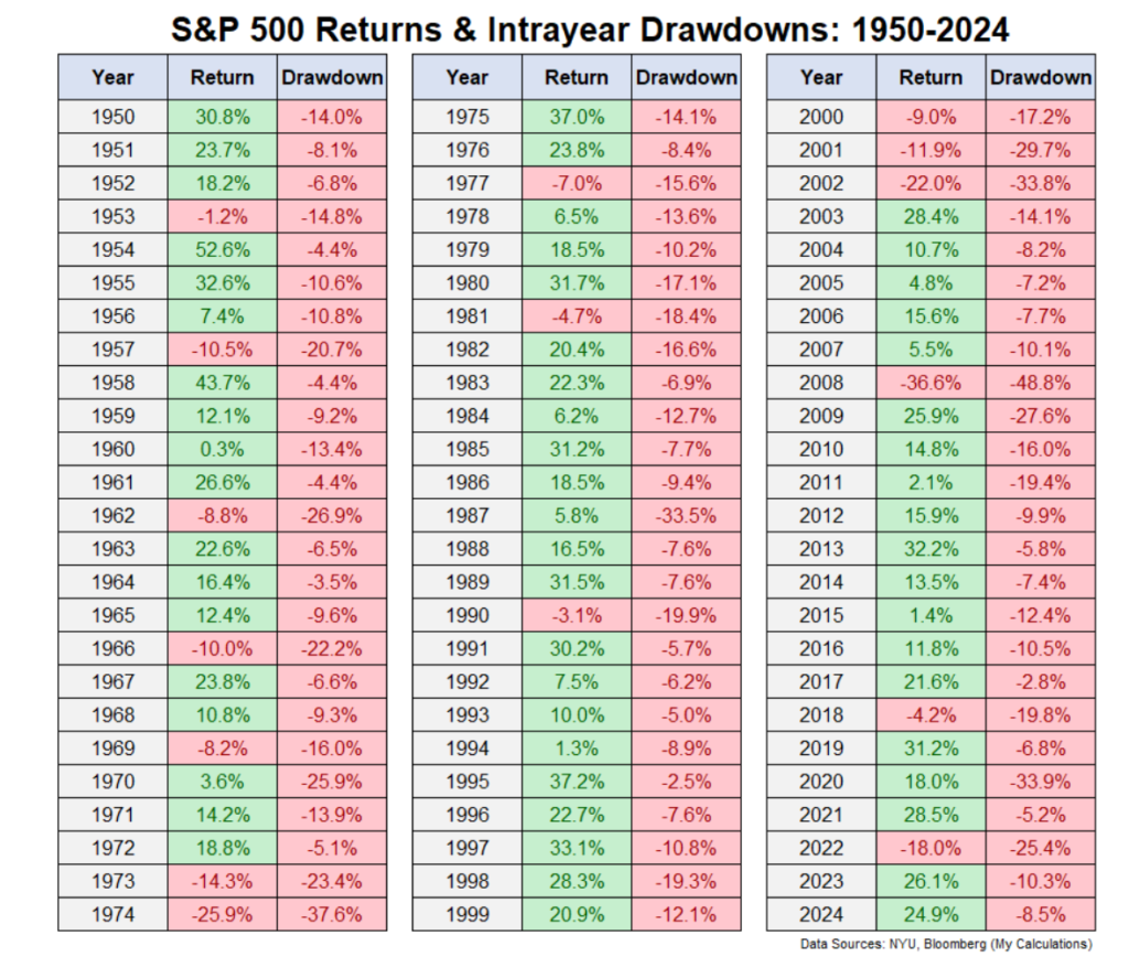 Last year, the S&P500 finished up 24.9% with a drawdown of 8.5% – That’s a swing of 33.4%! This year the index fell approximately 20% before rebounding, but of course, we don’t know how this calendar year will actually end.